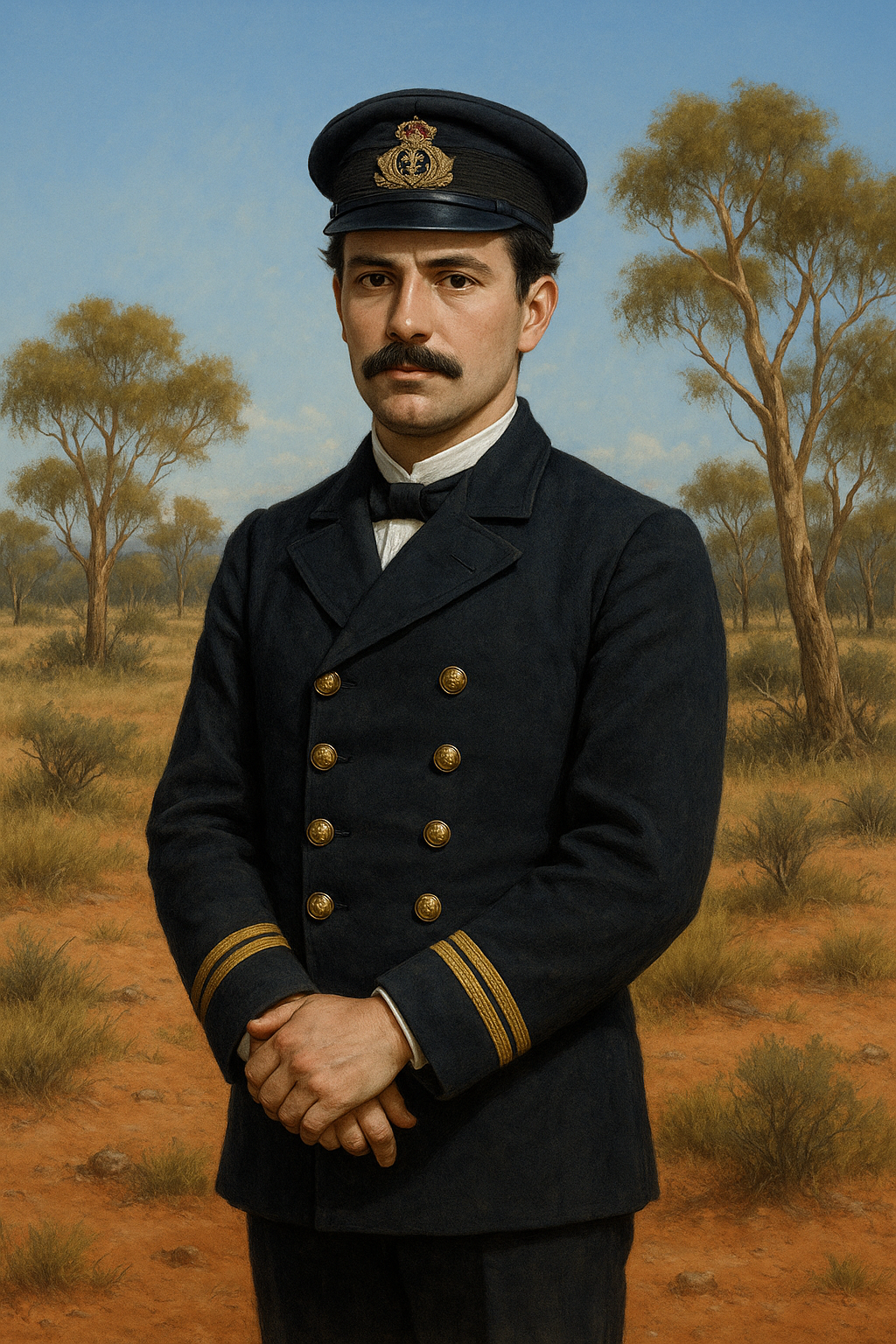 Trained at the Royal Naval Academy and seasoned by years at sea, Cripps brings naval precision to the colonial frontier. His impeccable uniform, polished cap and calm authority earn respect from sailors and settlers alike.